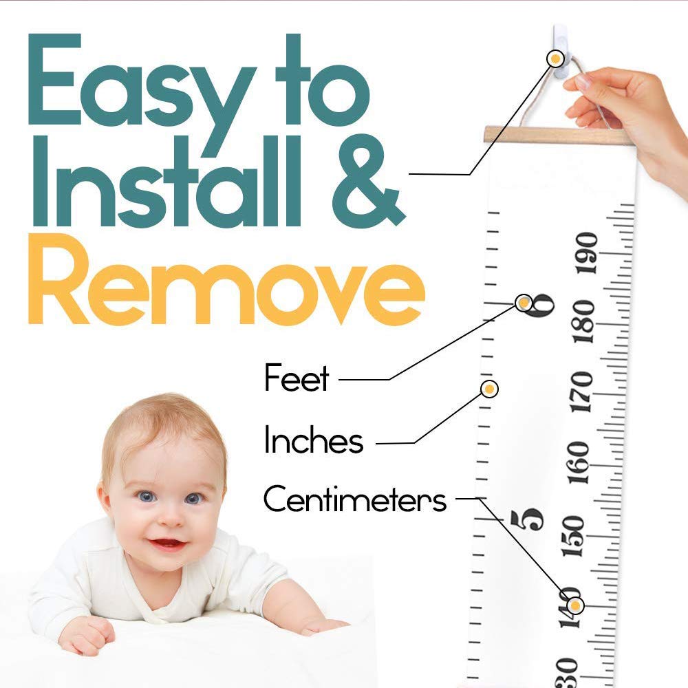 Growth Chart Wall Hanging, Portable Kids Wall Ruler Removable Height Measure Chart for Boys Girls Growth Ruler from Baby to Adult for Child's Room Decoration 79''7.9''