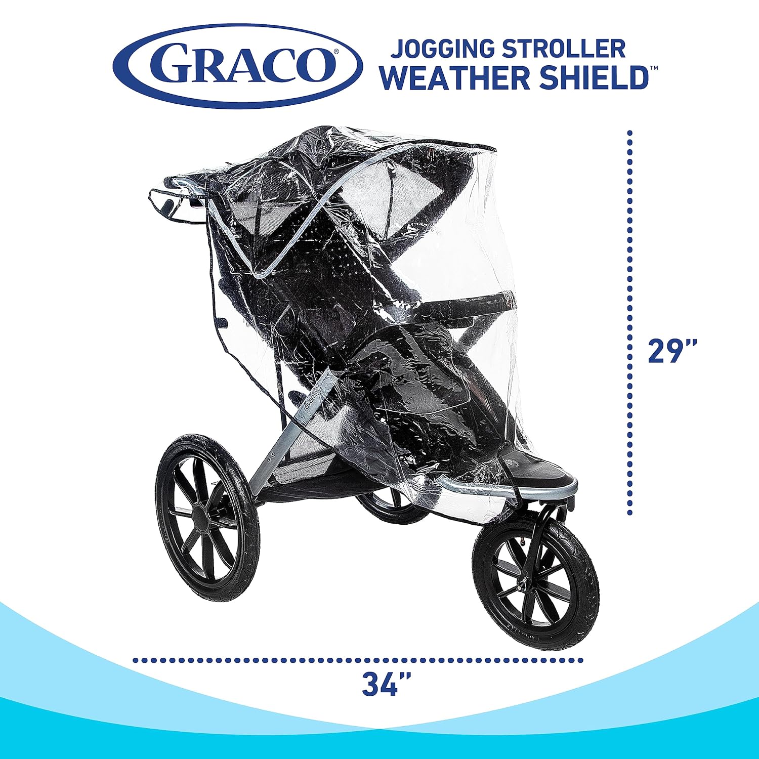 Graco Baby Jogging Stroller Universal Rain Cover, Ventilated Weather Shield, Waterproof, Windproof, Versatile Size to Fit Most Jogging Strollers, Vinyl, Clear, Plastic