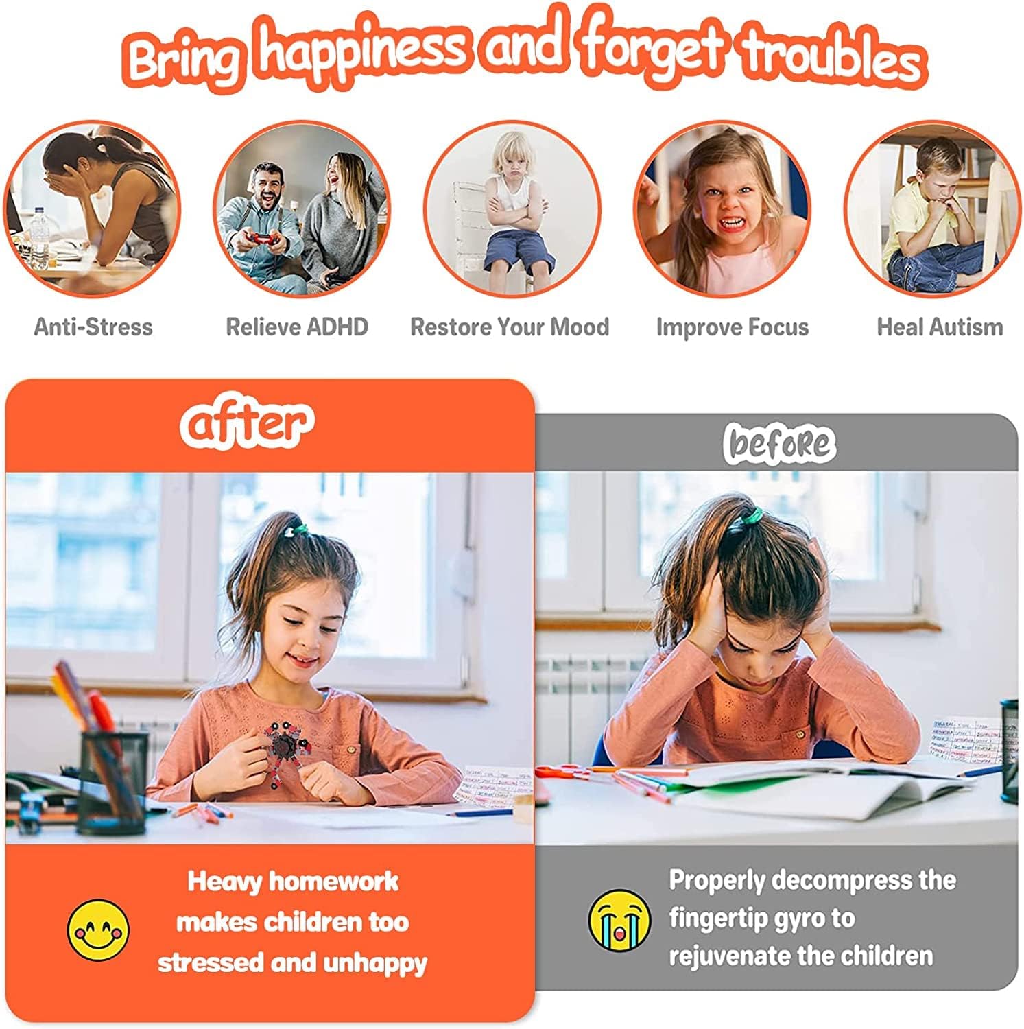 - 【Interesting Rotation】Such a round-edged fingertip toy,and adults and kids love it. You can put it on the table or other place. Through practice, fingertip toys can be manipulated well and create endless entertainment for you, especially to help alleviate ADHD, autism and concentration problems.