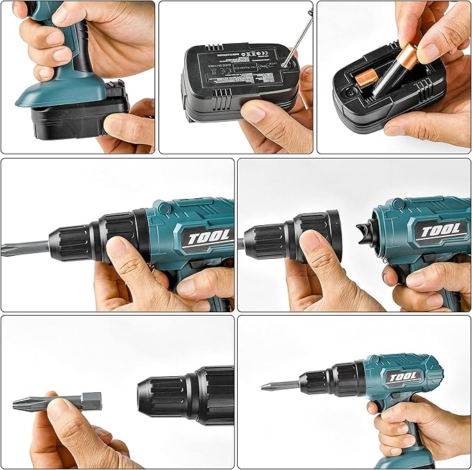 - 【Independent Slot Design】 Different from other electric drill toys, our product has an independent slot design. As long as you gently pull down the button on the back of the electric drill toy, you can easily remove the slot and install the battery (2AA batteries are not included), which is very convenient. This slot can also be applied to other products.