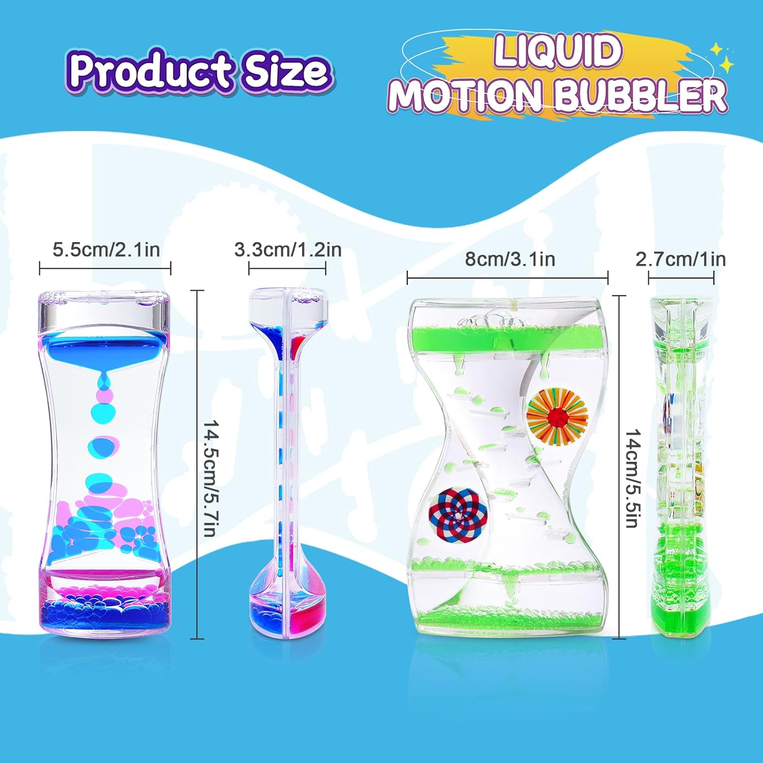 - 【Perfect Liquid Bubbler Timer Toy】:It’s one of the coolest relaxation toys for kids that can also be used by adults. This cool toy for sensory play provides an engaging opportunity to refine visual tracking skills with its rhythmic flow of bubbles. gentle fidget toy that pleases the eye and eases for comfort. It relaxes with its colorful droplets flowing to the bottom.r. It's a fun liquid exercise timer that teachers and parents can use to count down during activities.