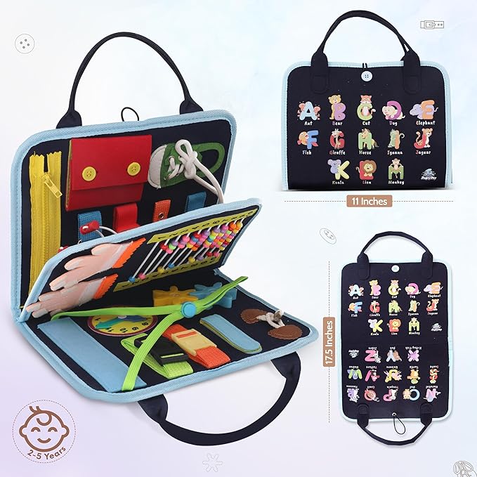 - ✈️ Perfect Travel Companion: Lightweight, compact, and complete with easy-carry handles—this toddler busy board is the ideal travel toy for car rides, flights, restaurants, or quiet time at home. Keeps kids engaged, learning, and entertained on the go.
