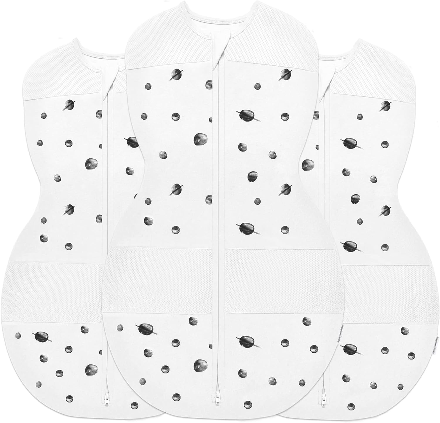 Happiest Baby Sleepea 5-Second Swaddle - 100% Organic Cotton Baby Swaddle Blanket - Doctor Designed Promotes Healthy Hip Development - 3-Pack Newborn Bundle (Ivory Planets, 2 x Small, 1 x Medium)