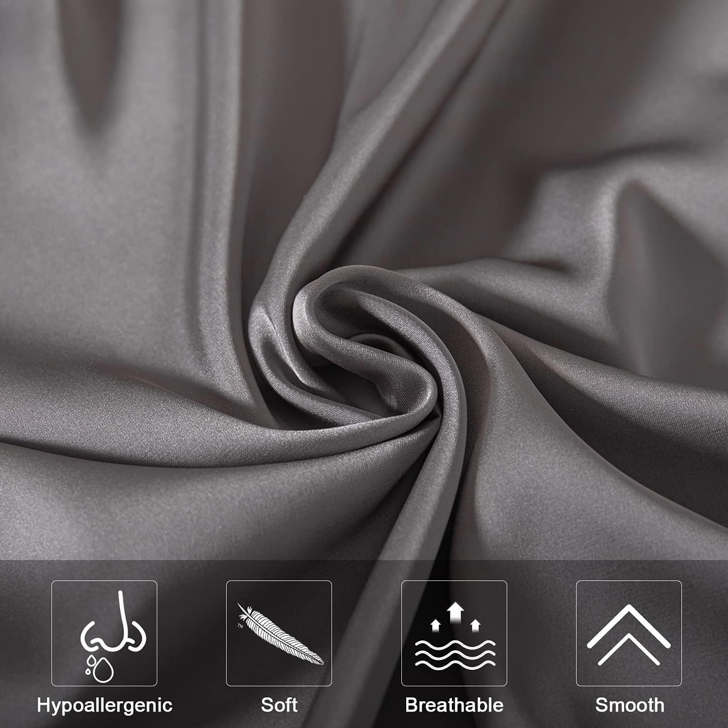 2 Pcs Mulberry Silk Pillowcase for Hair and Skin,Cooling Silk Pillow Case with Hidden Zipper,Allergen Proof Dual Sides Soft Breathable Smooth Silk Pillow Cover for Women(Standard-2PCS,Dark Gray)