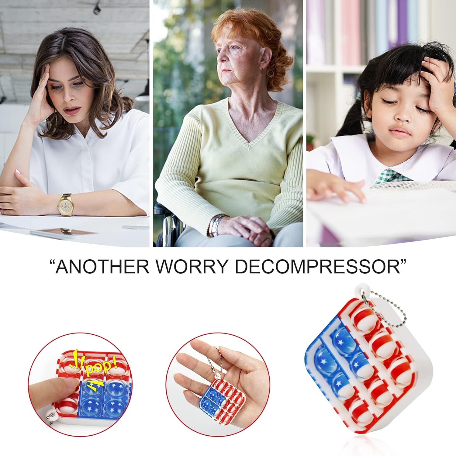 - 【Effective Stress Relief】press the bubble on this flag mini keychain fidget toy, it will make a sound, this sound sounds cute, turn it over, start again, squeeze repeatedly. No matter where you are, you can play when you feel anxious or bored. This mini bubble keychain toy is suitable for people with inattention and ADHD, but also for students, office workers and daily entertainment.