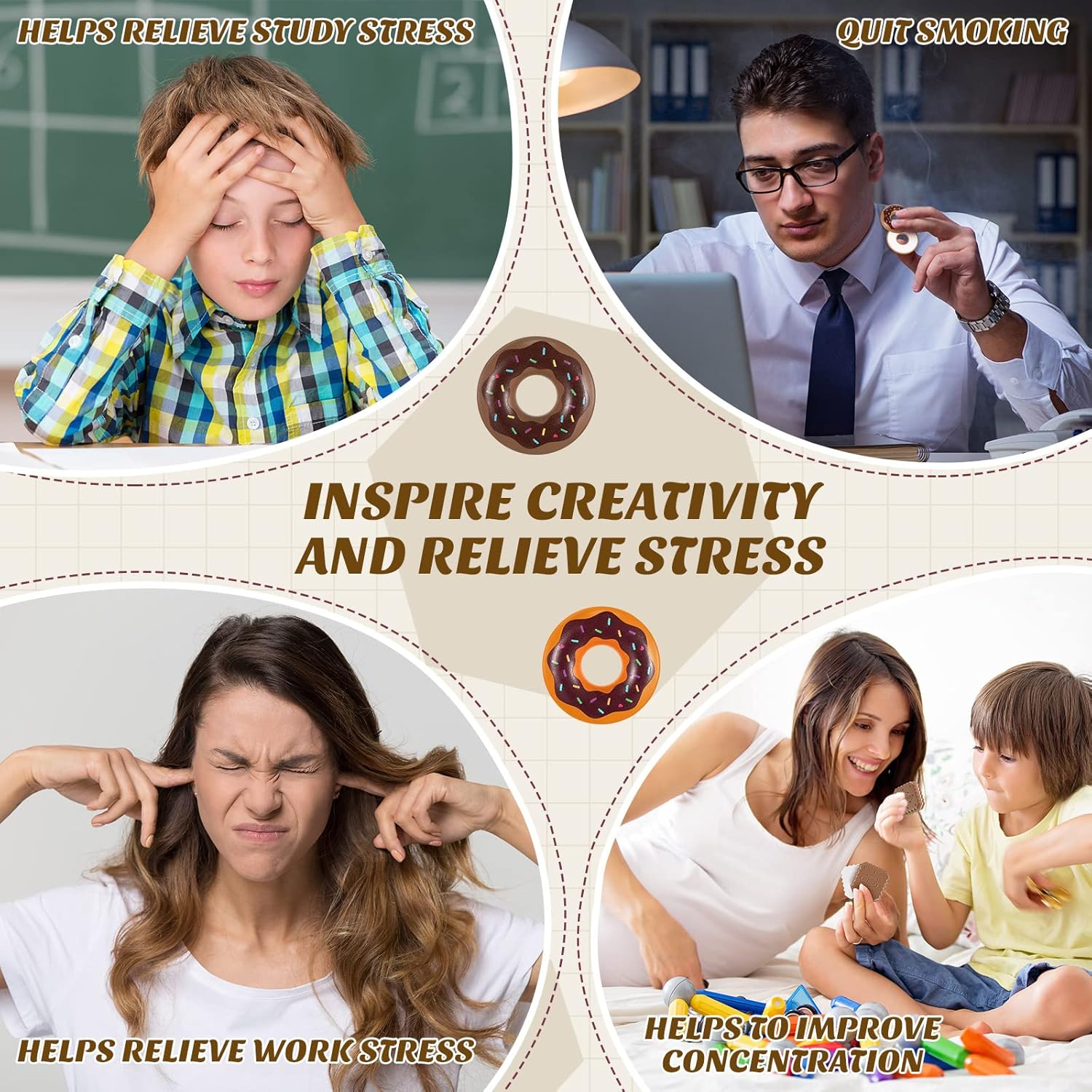 - Package Sent to You: you will receive 2 pieces of fidget toys in 2 designs, which are inspired by round donut, lovely in appearance, quiet to play, will relax your nerves, and bring you a light heart
