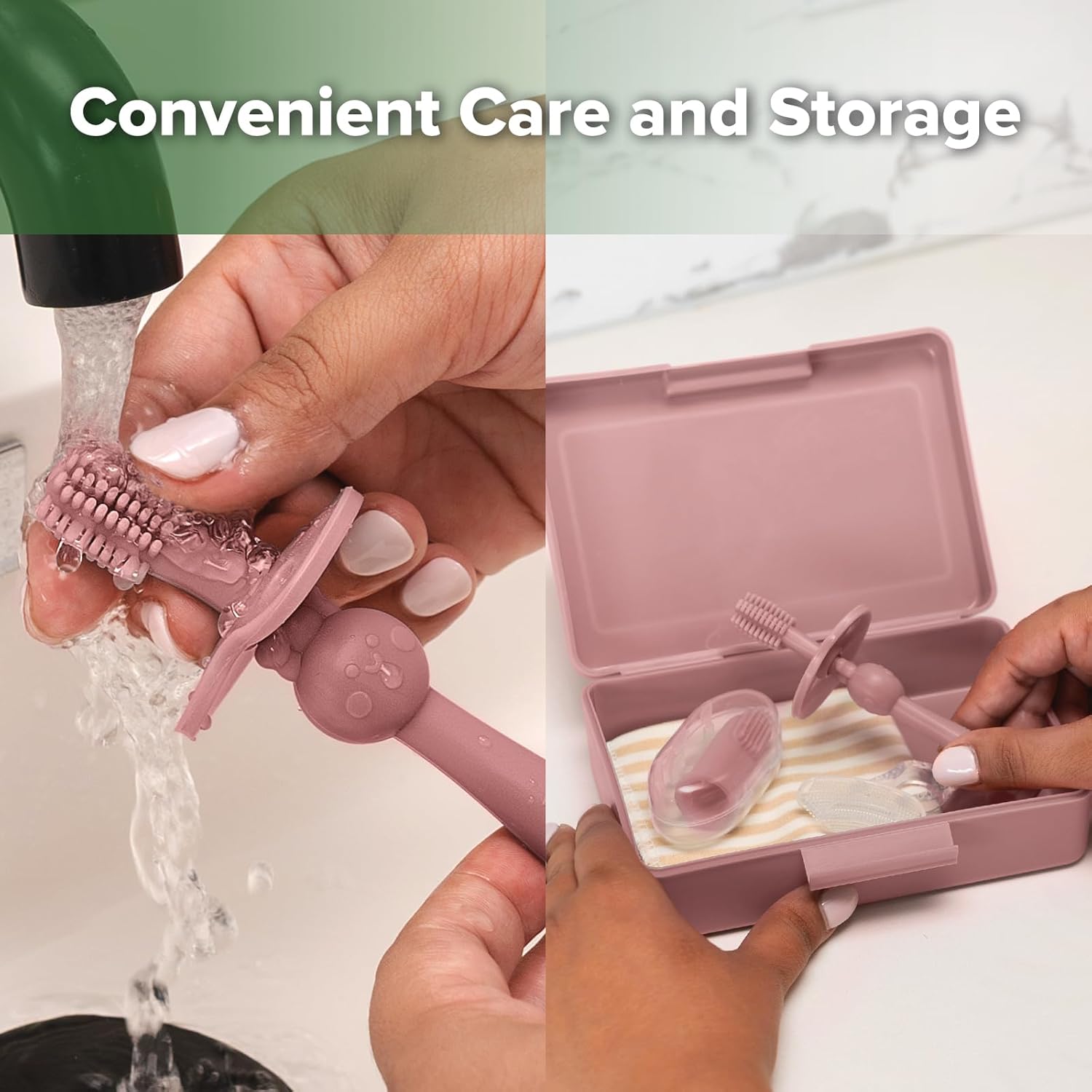 haakaa Training Toothbrush Set Oral Care Kit, Soft Silicone Toothbrush for Baby, Infants, Toddlers & Kids, Blush