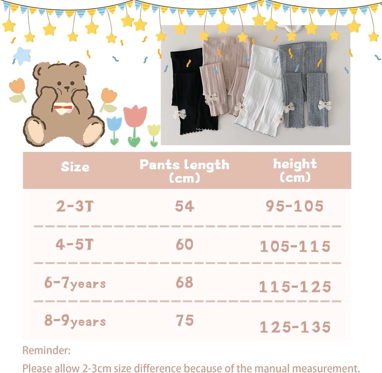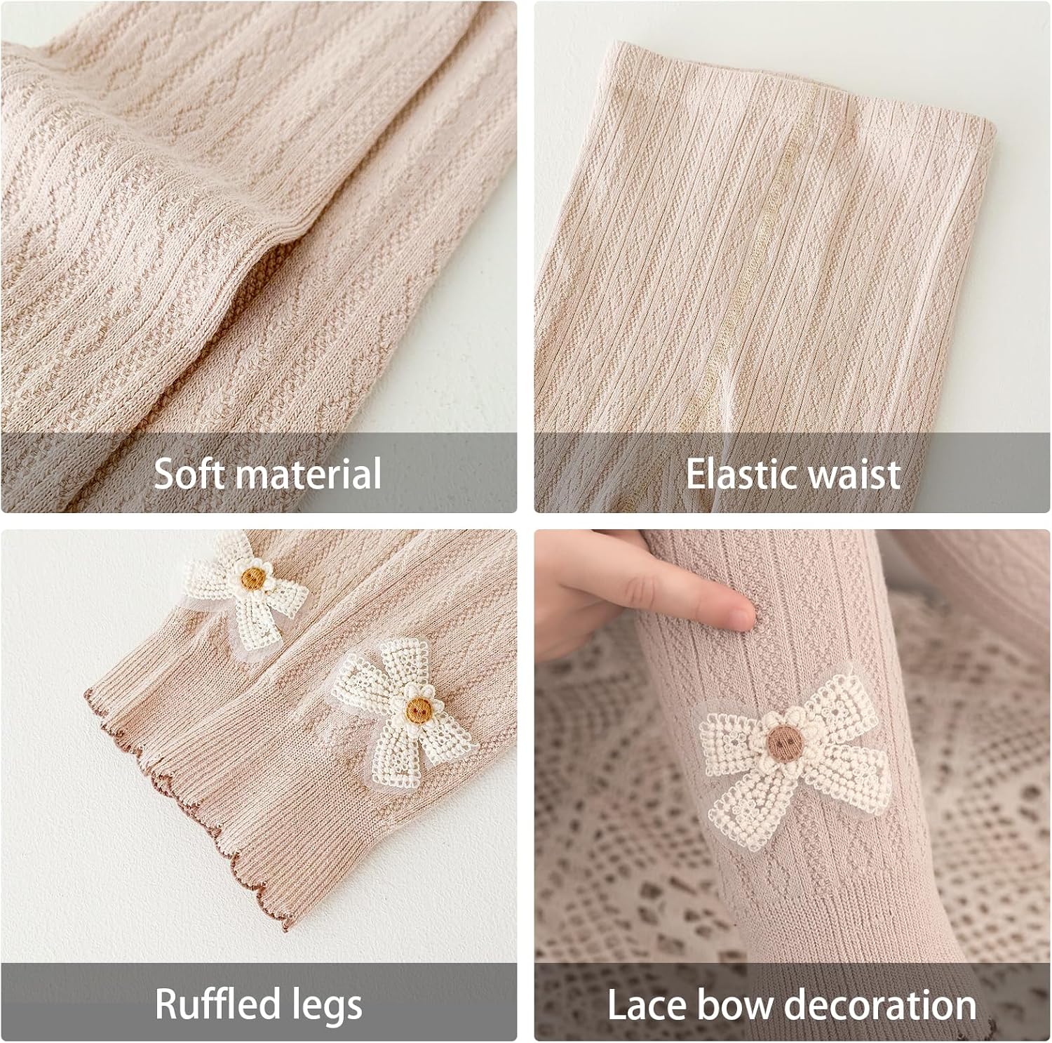 - Fashion AND Versatility: Compared with the old single plain leggings, it is designed with a bow-knot decoration on both sides. Let your baby girl be a beautiful princess everyday.