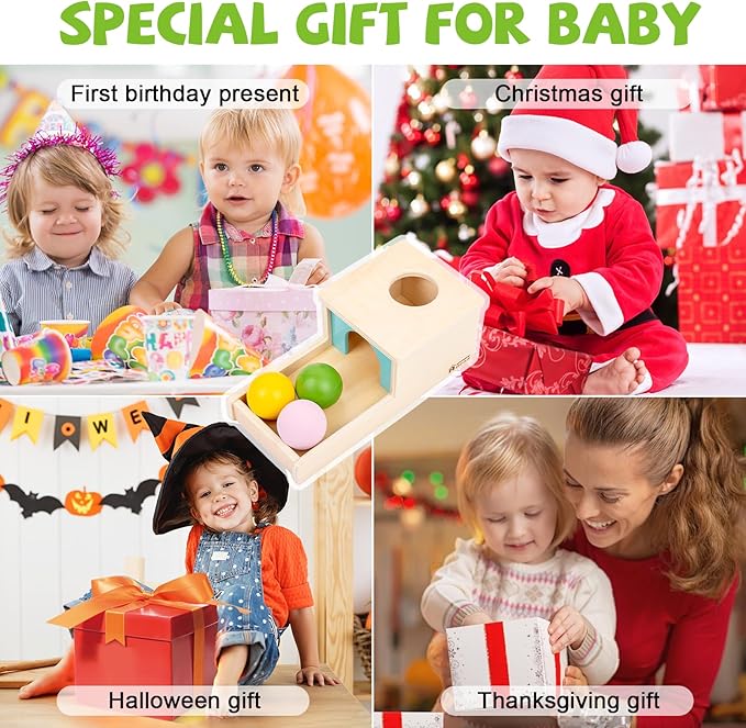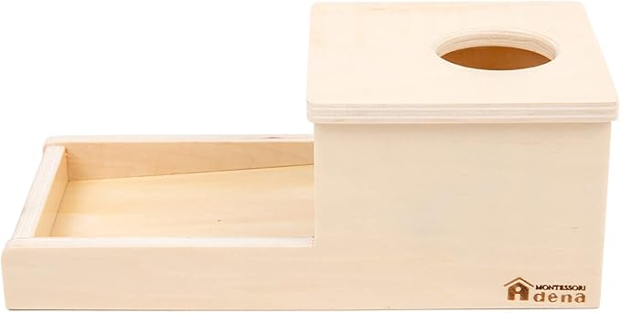 - đăEngages Sensory Explorationă: The Montessori Object Permanence Box stimulates sensory exploration through the use of various materials. Yellow wooden ball, green plastic ball and pink Eva soft ball.The different textures of the wooden, plastic, and soft balls provide tactile stimulation, allowing infants to feel the material, weight and temperature of different balls,engage their sense of touch and further develop their sensory perception.
