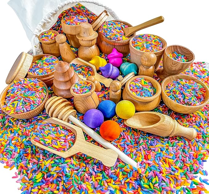 - Endless Possibilities: Available in both 10-piece and 30-piece options, this toddler sensory bin set provides a variety of tools such as a honey dipper, scoops, and bowls. Our sensory table toys are suitable for exploring sensory fillers like rice, beans, and oats