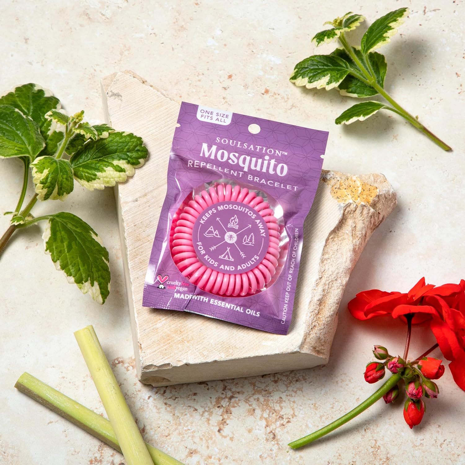 - DEET Free, Made with Essential Oils – Our repellent bracelets are made with natural essential oils: Geranium, Lemongrass and Citronella. Essential oils have been found to repel mosquitoes.
