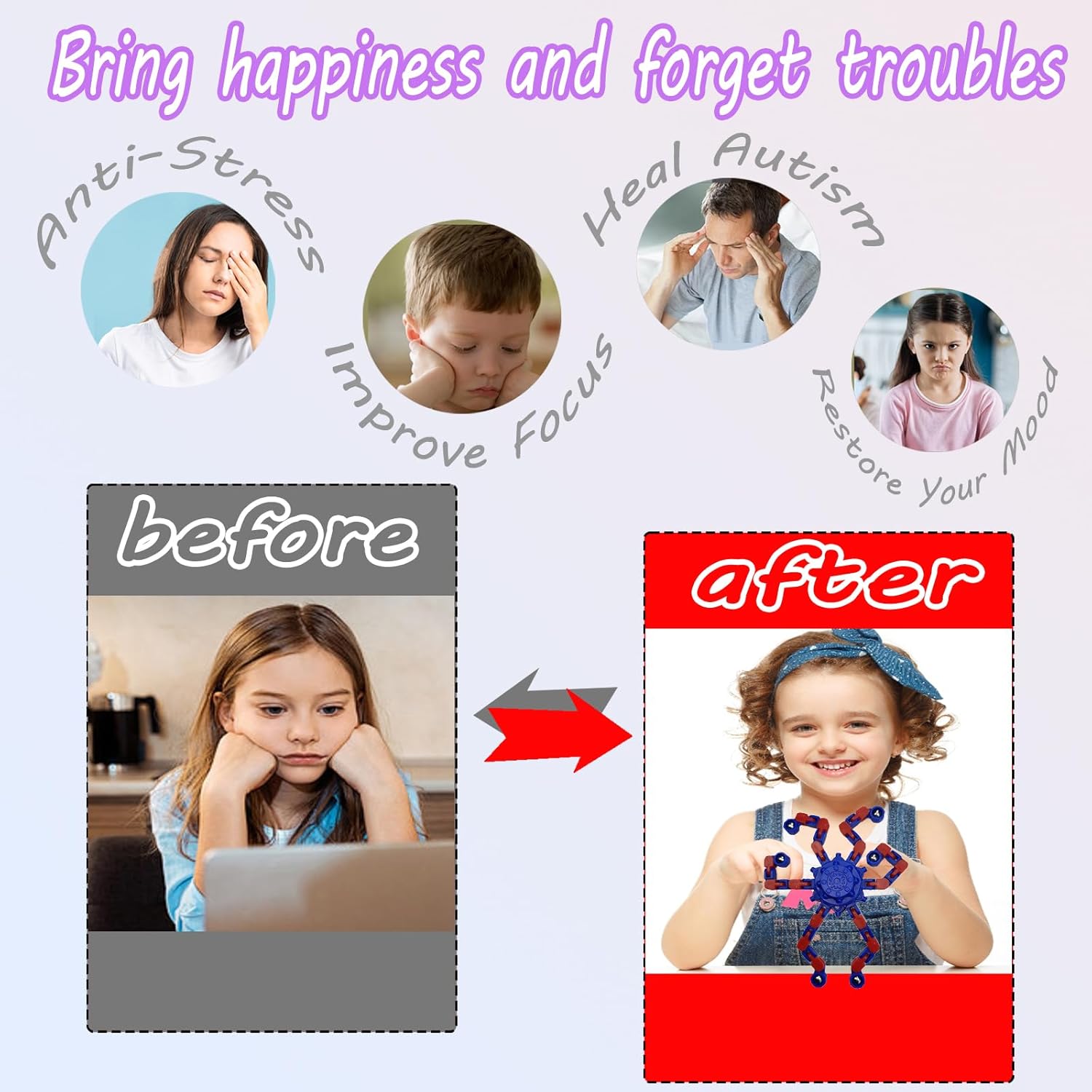 - 【Premium Materials】 These deformable fingertip toys are made of durable plastic and metal to ensure that the deformed chain will not break when dropped and the metal will not fall off.