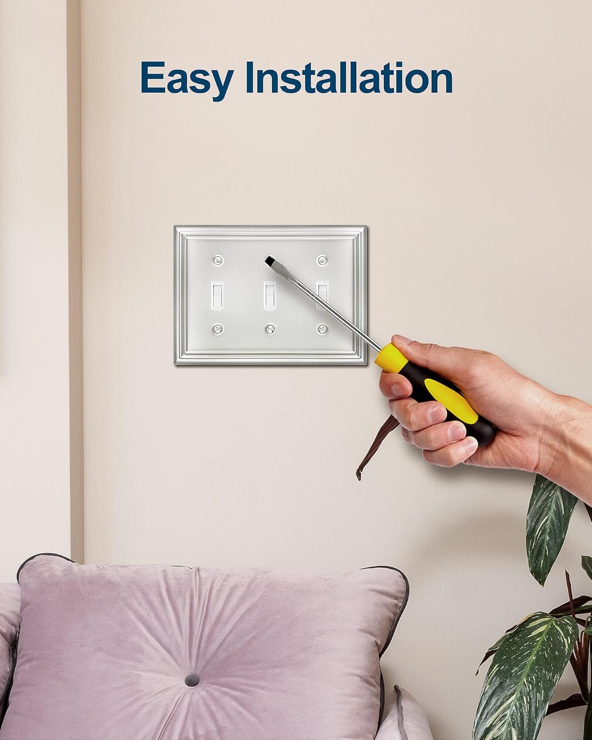 - 【Easy Installation】All it takes is a screwdriver, you will acheive a quick and easy replacement with the included pack of 2 triple toggle wall plate covers and 12 matching screws