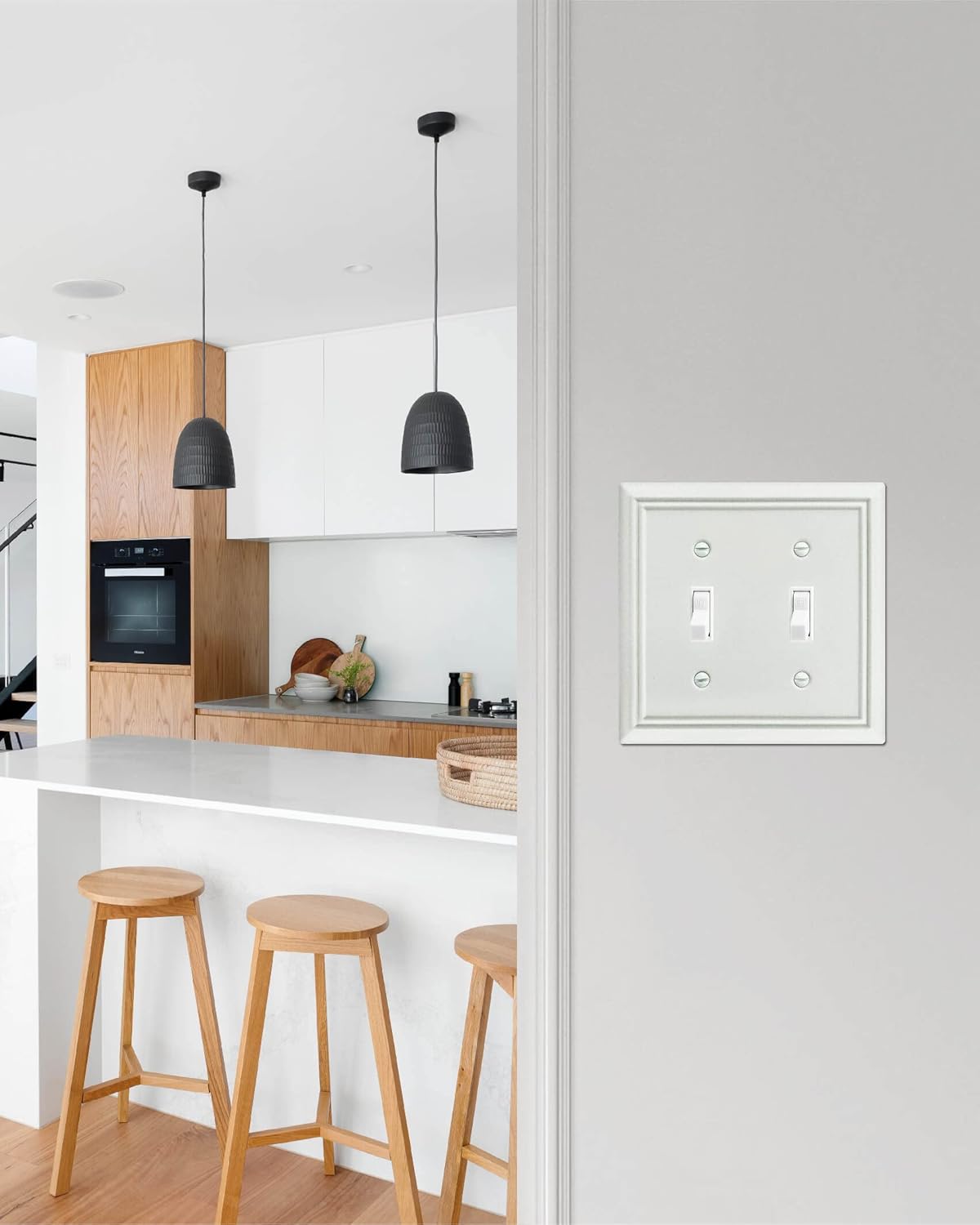 2-Pack Double Toggle Wall Plate, Decorative Light Switch Cover, Metal Switch Plate Cover, Off White Finish, Midsize