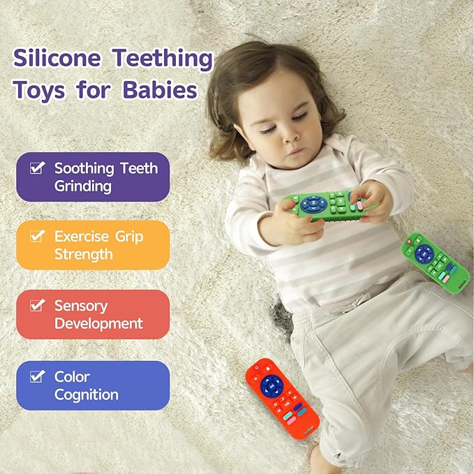 - 【Safe High-Quality Material】The Baby Remote Control Toy is made of Food Grade Silicone, Non-toxic, BPA-free, Durable for biting and chewing.The Baby Teething Toy is Soft, Smooth surface, No burrs. The soft and bendable silicone material can avoid damaging your baby's gums.