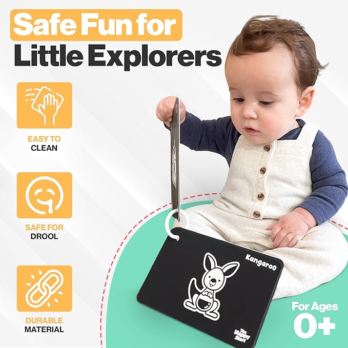 - SAFE, DURABLE & EASY TO CLEAN: Crafted from non-toxic materials, these black and white cards for newborns are BPA-free and water-resistant, designed to withstand drool and spills. Enjoy hassle-free cleaning so you can focus more on quality time with your baby by using our cards.