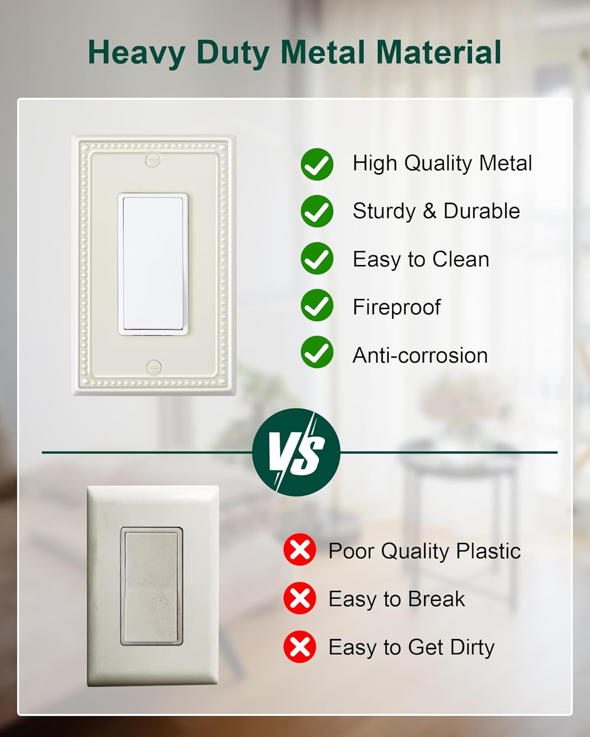 - Durable & Long-lasting - Constructed from high-quality metal, our light almond metal wall plate is built to last. It is resistant to impact, tarnishing, and corrosion, ensuring its durability and longevity. Rest assured that this outlet covers wall plate will remain an attractive addition to your home for years to come.