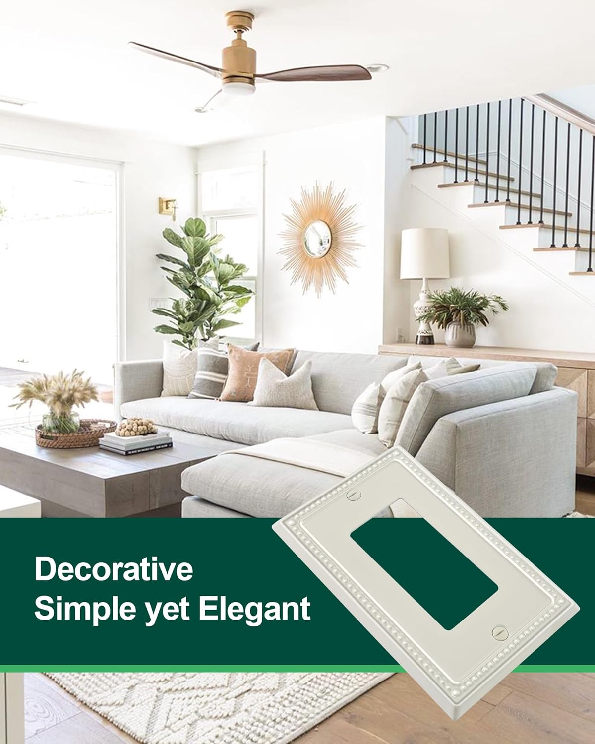 - Elegant Light Almond Finish - The decorator outlet cover plate features a soothing light almond finish, not as dark or yellow as ivory, offering a warmer tone than stark white. This elegant finish adds a fresh appeal to your room and seamlessly blends with any interior style, enhancing the overall aesthetic of your home decor.