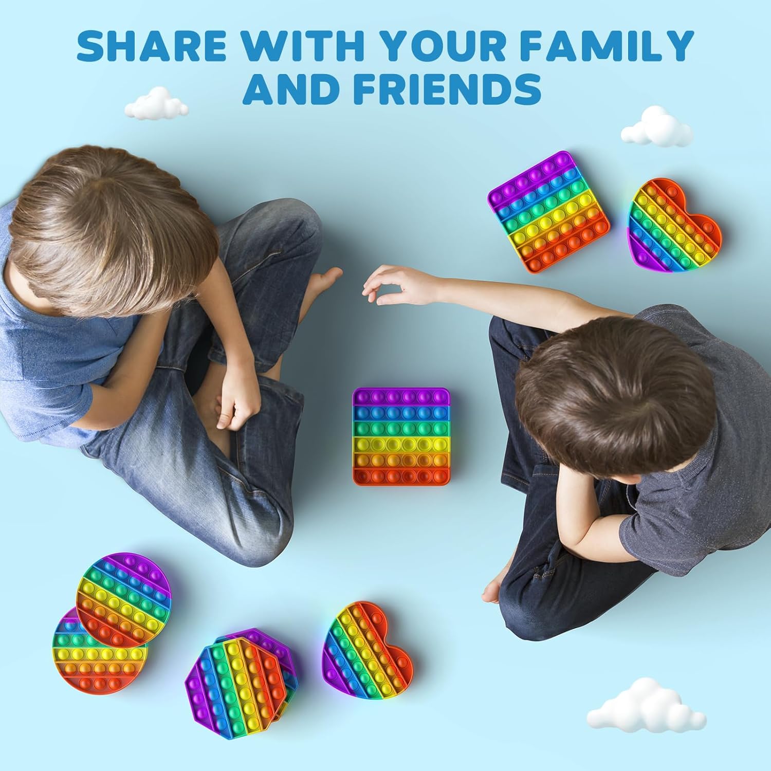 - 【Games for All Ages 】These stress-relieving pop pack toys are great for everyone. For kids, Fidget toys Pop bulk fidgets gifts are perfect for friends to spend a happy stress-relieving time together. For adults, relieve stress and keep the brain active, prevent the degeneration. It's a good helper to relieve anxiety. By squeezing our silicone bubble, you can get mental comfort and emotional release.