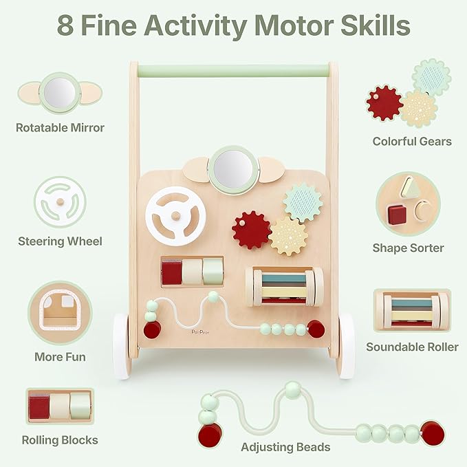 - 8 in 1 Busy Board: Mirror, abacus, gear maze, shape sorter and more learning toys keep little hands busy while legs master cruising