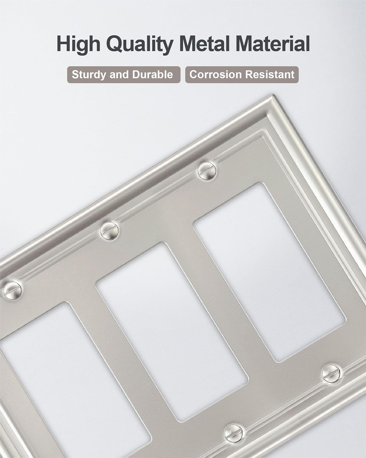 2-Pack Triple Decorator Wall Plate, 3 Gang Wall Plate for GFCI Outlet, Dimmer Switch, Receptacle Cover, Satin Nickel, 6.77 * 4.88, Midsize