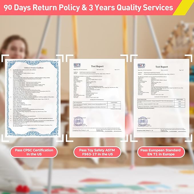 - 【Certified CPSC and ASTM in US & EN 71 in EU】FUNLIO swing set & baby jumper have passed CPSC and ASTM in US, European Standard EN 71 in EU. The stand is made of robust extendable steel and a scientific triangular design, so it is very stable and durable. The swing set comes with strong ropes and a safety belt. The baby jumper is equipped with 304 stainless steel springs, two buckles, and an adjustable soft cotton seat belt. They are a perfect gift for Children's Day and Christmas.