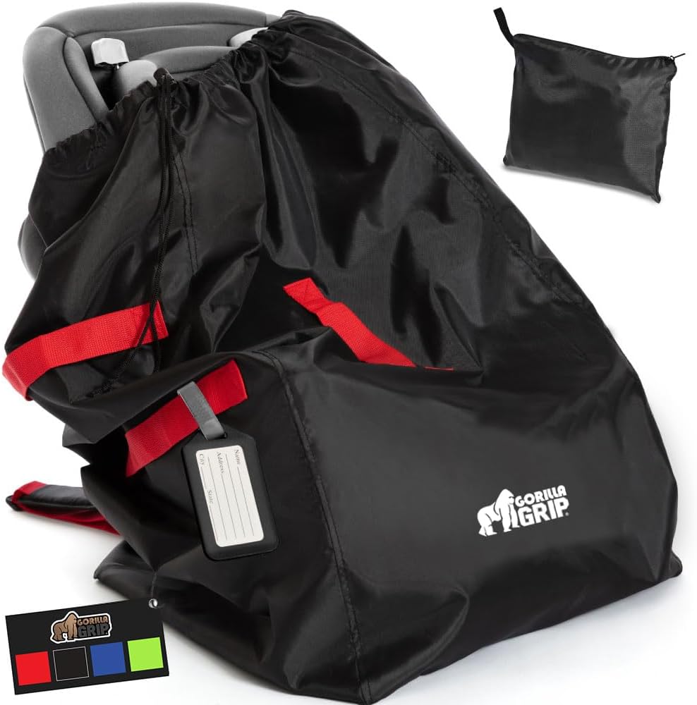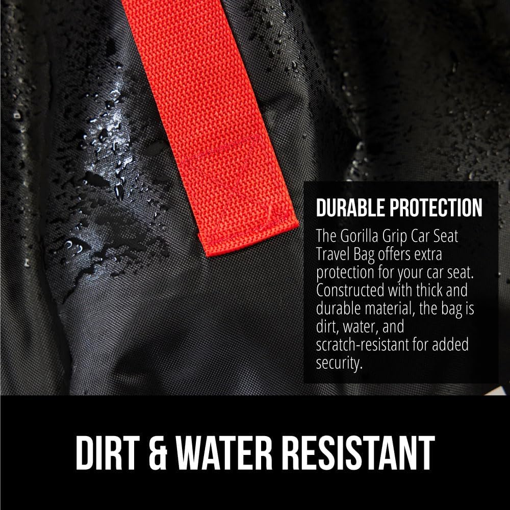 - DURABLE PROTECTION FOR YOUR CAR SEAT: a must for traveling, the Gorilla Grip Car Seat Travel Bag is designed to help protect your car seat while you travel; bag is water, tear and dirt resistant; features drawstring closure that tightly closes around the car seat, helping to protect from dirt, grime and moisture; bag is made of lightweight, yet durable material that can be machine washed​