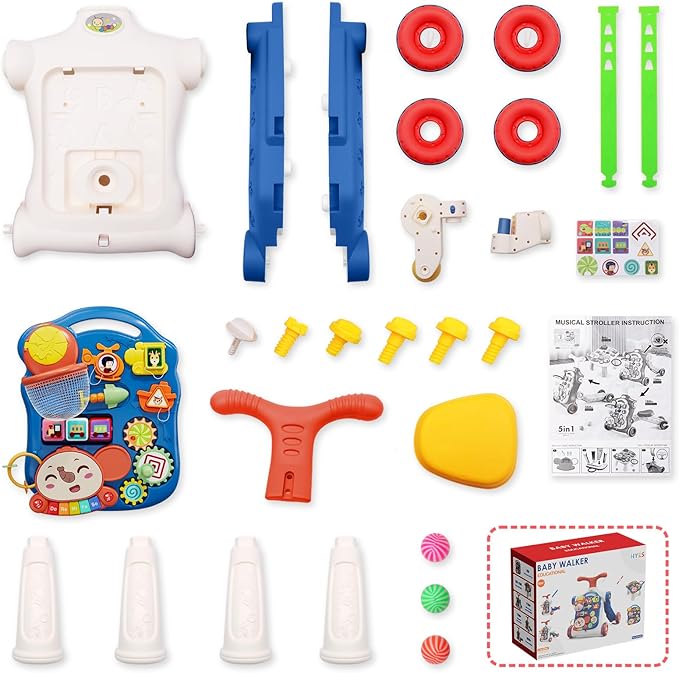 - [Perfect Gift Choose]: 5 in 1 designs, accompany baby’s 5 growing stages from 12 to 60 months, help to exercise kid’s hearing, vision, touch, hand and leg muscles, cultivate their imagination, hand and brain coordination ability. Best indispensable partner for growing babies to explore the world, which is a wonderful birthday present for baby boys