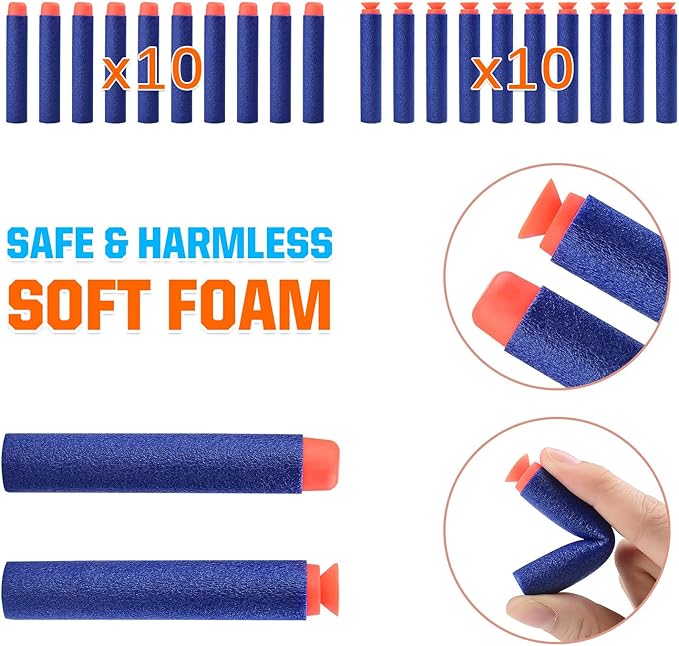 - 20 Soft Foam Darts: The guns multipack includes 10 round-tip darts and 10 suction darts that stick to smooth surfaces, adding an extra element of fun to shooting practice
