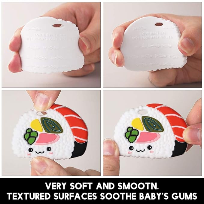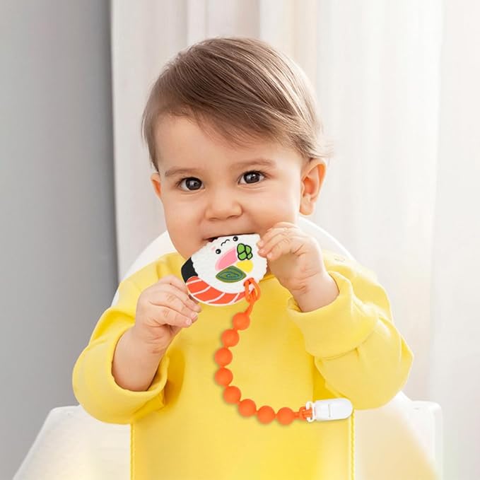 Baby Food Grade Silicone Teether Toy with Pacifier Clip Holder,Teething Toys Gift Set for 3 Months+ Boys and Girls,Freezer Safe,BPA Free. (Sushi)