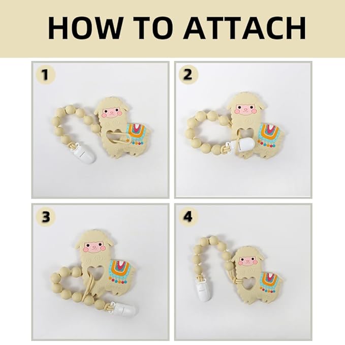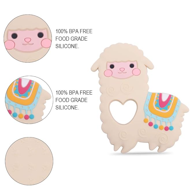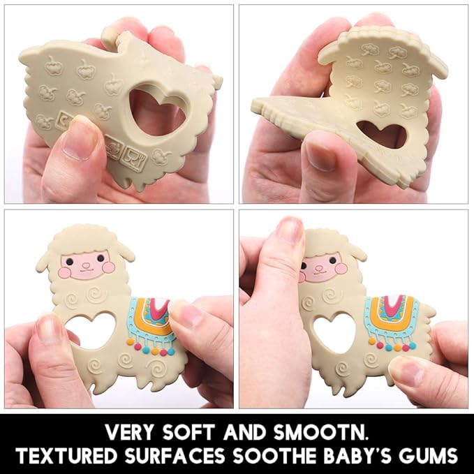 Baby Food Grade Silicone Teether Toy with Pacifier Clip Holder,Teething Toys Gift Set for 3 Months+ Boys and Girls,Freezer Safe,BPA Free. (Yellow Llama)