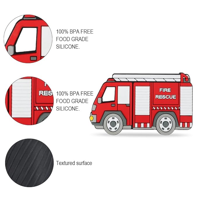 Baby Food Grade Silicone Carrier Vehicle Teether Toy with Pacifier Clip Holder,Teething Toys Gift Set for 3 Months+ Boys and Girls,Freezer Safe,BPA Free. (Fire Truck)