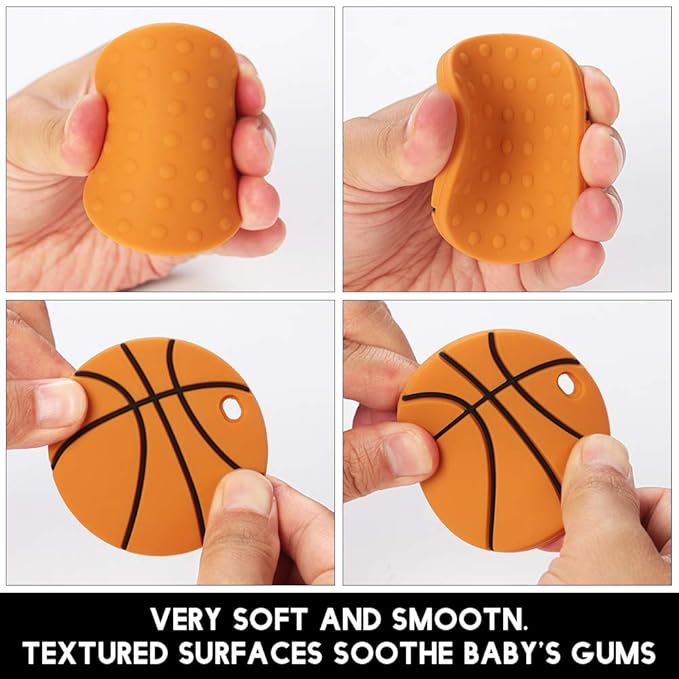 Baby Food Grade Silicone Sport Ball Teether Toy with Pacifier Clip Holder,Teething Toys Gift Set for 3 Months+ Boys and Girls,Freezer Safe,BPA Free. (Basketball)