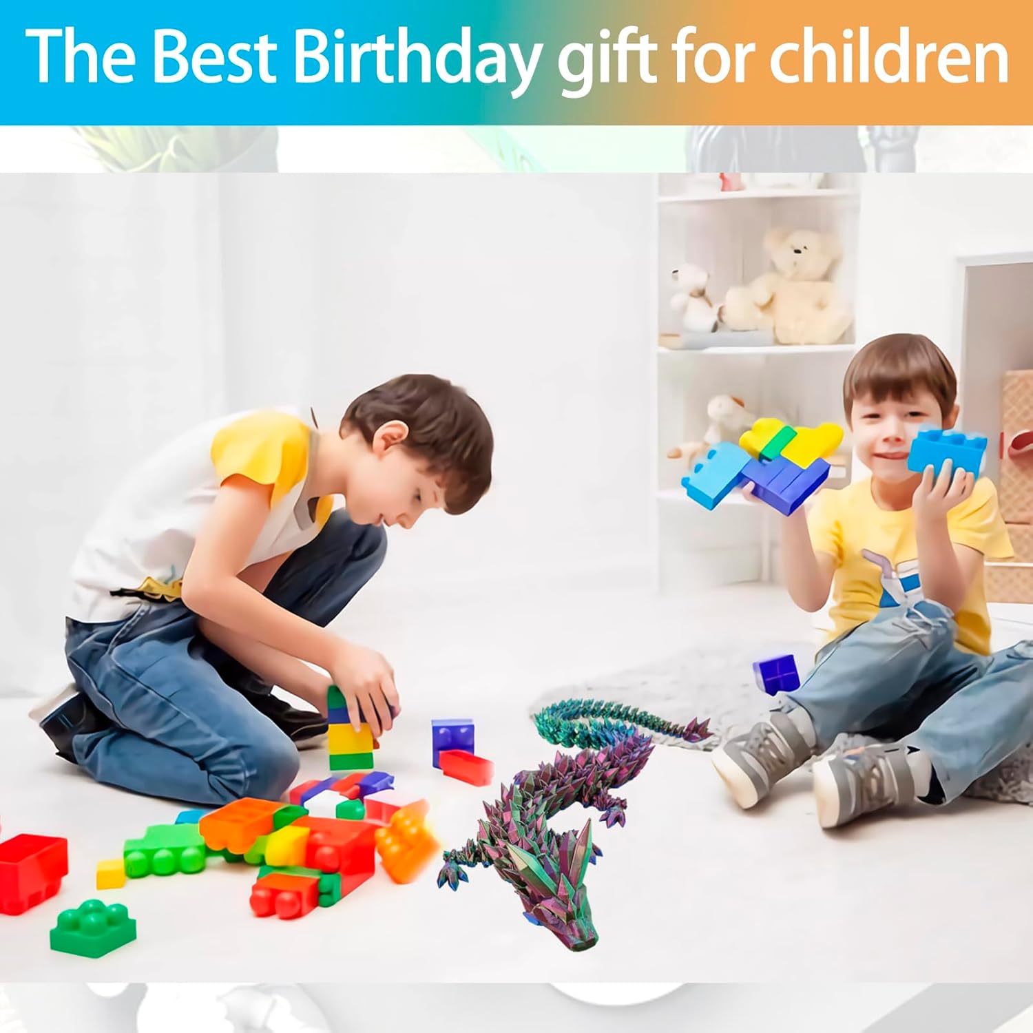 3D Printed Dragon, 3D Dragon ,30 Inch 3D Printed Fidget Dragon, Bigger Fidget Crystal Dragon Toys , 3D Printed Articulated Dragon for Home Office Car Desk Decor Toys (Blue Green Purple)