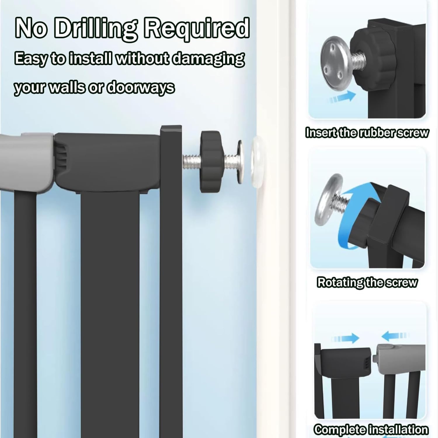 - 【Smart Self Closing Feature 】Along with a two-way step walk through door, and can be easily opened by one-handed operation. This tall cat gate is equipped with an auto-close function. The 51 inch 51 inch tall dog gate automatically closes at 30 and 90 degrees, without any effort from a parent.