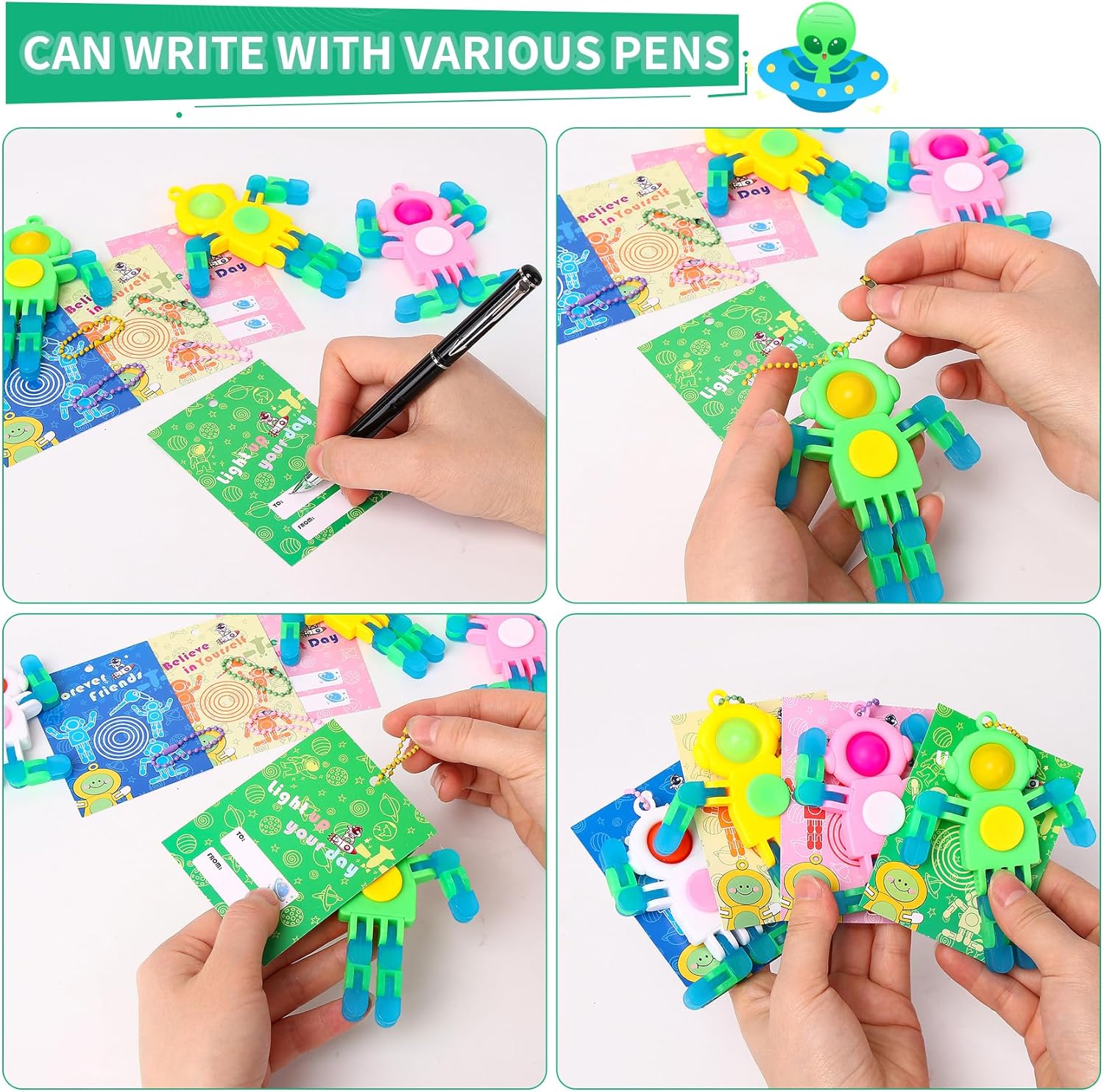 24Pcs Pop Fidget Spinners Bulk - DIY Deformable Astronaut Fingertip Toys with Cards Keychain Fidget Spinners Glow in The Dark Party Favors Sensory Toys Bulk for Kids Adults Classroom Prizes