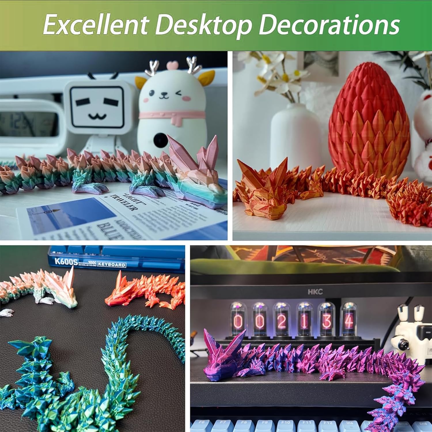 - 【Premium Quality Materials】: Made from high-quality materials, this dragon is durable and long-lasting. However, please note that due to the nature of 3D printing, the colors and patterns of the dragon may vary slightly from the product images.