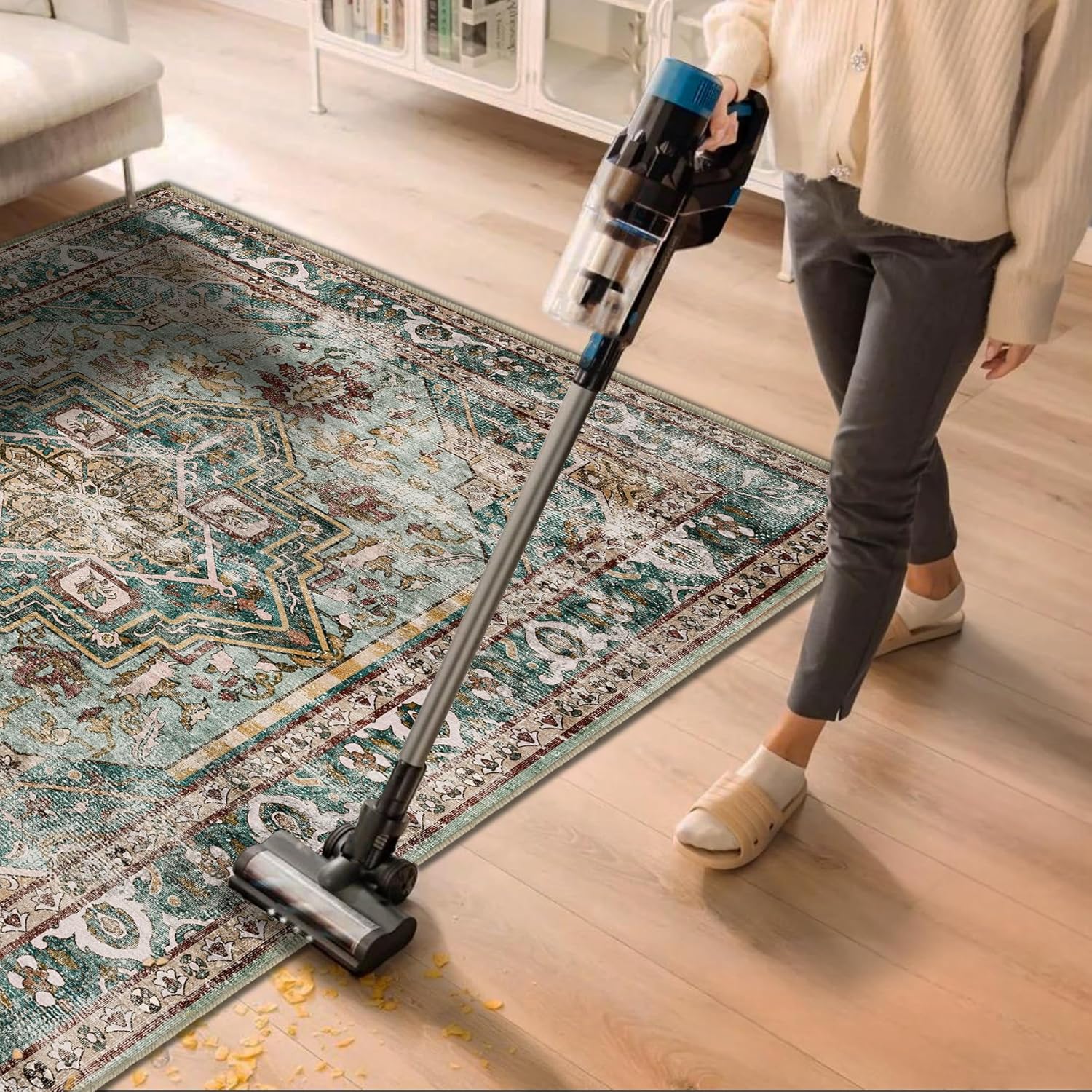 - Ultra-thin Safe: This ultra-thin Moroccan rug can be easily placed in entryways and under furniture, and won't get stuck on doors and become a tripping hazard. The sweeping robot can move freely to clean the carpet.This indoor rug can be used in many occasions, such as entry, living room, bedroom, dining room and more