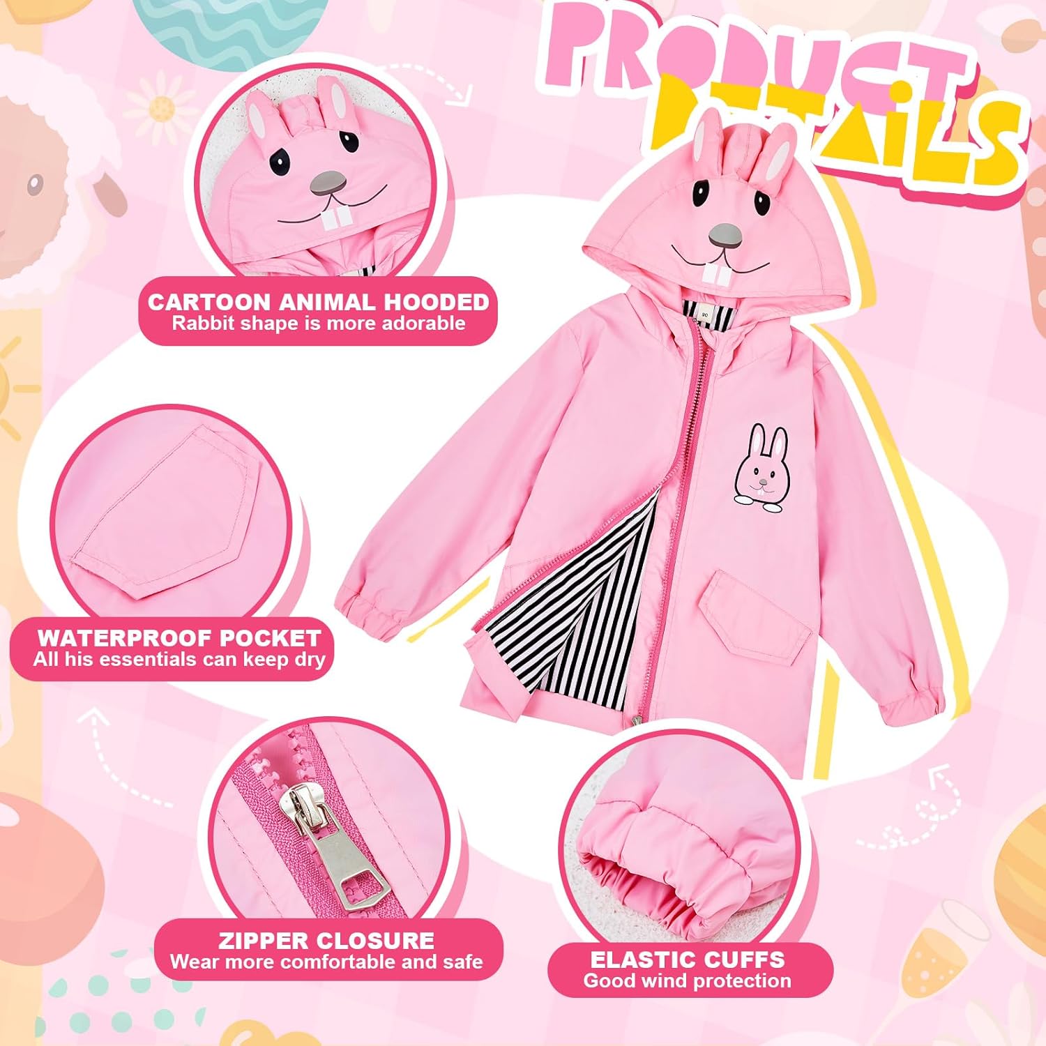 - Adorable Design and Color: our raincoat has a lovable rabbit design that adds a cute touch; The raincoat is lovely and vivid, and will make your toddler gets excited about wearing their rain coat