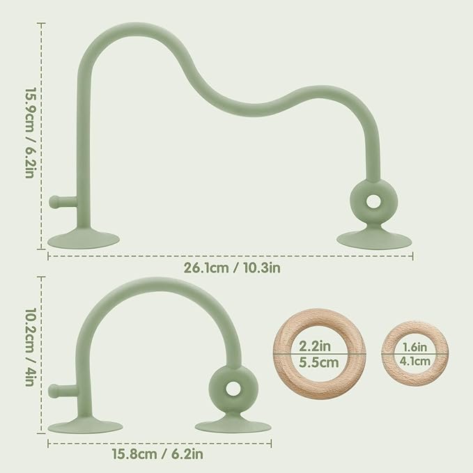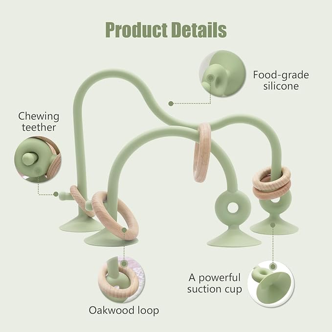 - 【Safe Material】Our high chair toys with suction cup is made of high-quality Food-Grade silicone and premium beech wood loop, ensuring safety and durability, BPA-Free and non-toxic. Safe for your baby during playtime and teething activities.