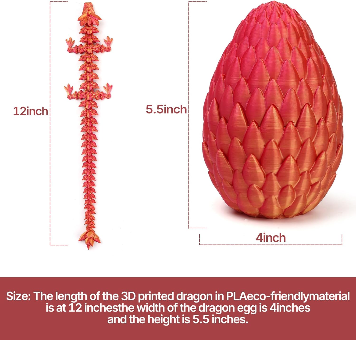 - Eco-Friendly Material: This 3D printed dragon and dragon egg is made of eco-friendly PLA material, and the complex 3D printing technology makes the dragon egg fit tightly. The details are realistic, lightweight and durable.