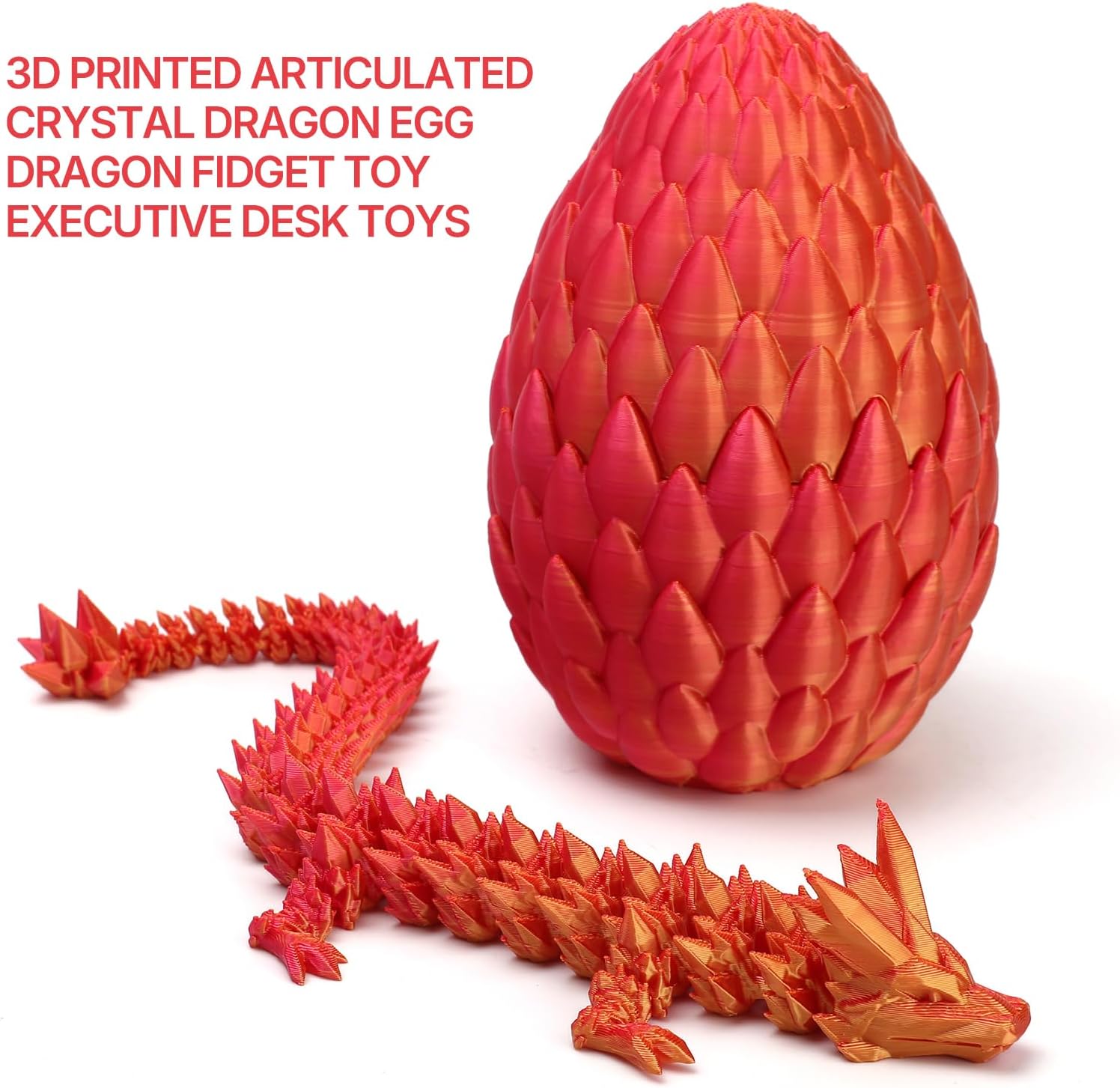 - Note:Multicolored dragons may vary in color pattern from photos due to the nature of the PLA filament when 3D printed. Includes a 12‘’articulated crystal dragon and a 5.5‘’dragon egg.