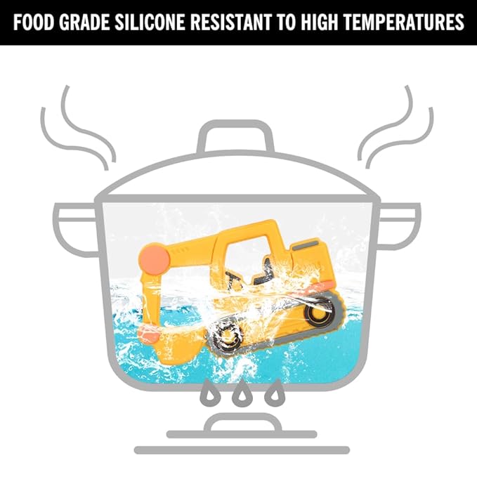 Baby Construction Vehicles Teething Toys,Food Grade Silicone Teether with One-Piece Pacifier Clip Holder,Best Shower Gift for 3 Months+ Boy and Girl,BPA Free,Freezer Safe. (Excavator)