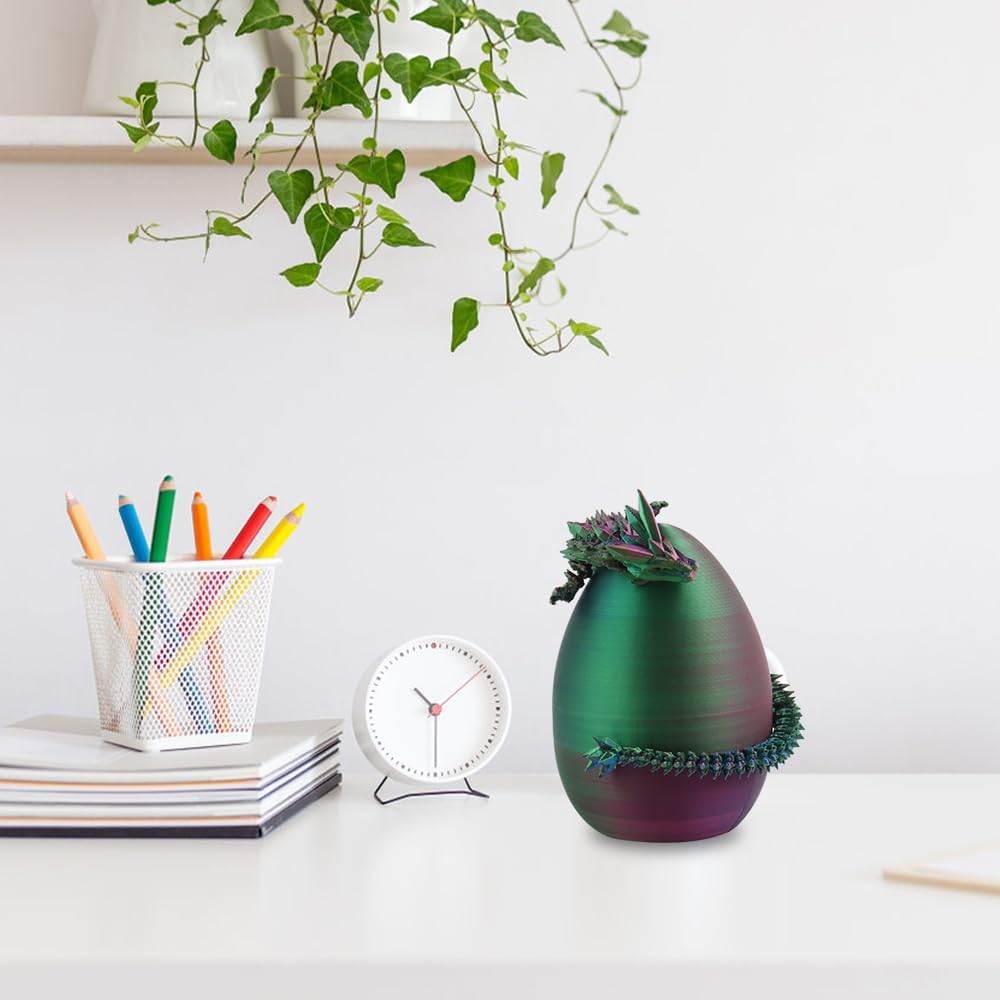 - 【Various Colors Available】The 3D printed dragon egg is available in a variety of colors, representing different meanings and strength. The Full Articulated Dragon measures 11.42 inches in length and the egg measures 4.8 inches in height and 3.6 inches in diameter.