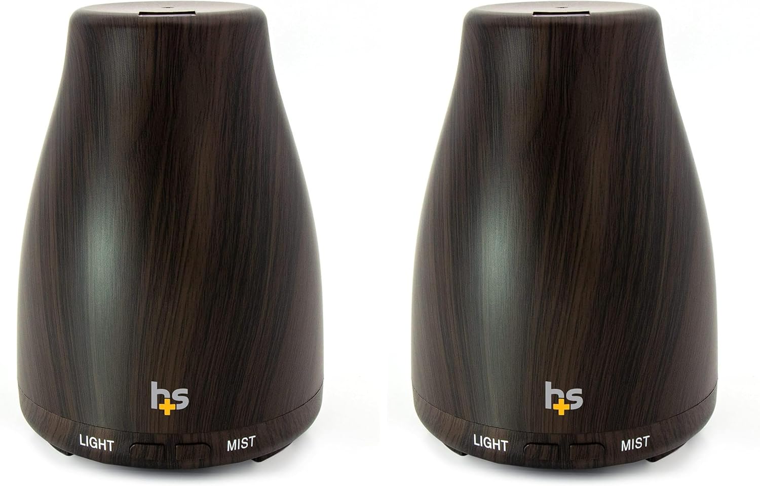 HealthSmart Essential Oil Diffuser, Cool Mist Humidifier and Aromatherapy Diffuser with 150ML Tank Ideal for Small Rooms, Adjustable Timer and Mist Mode, Wood Grain Brown (Pack of 2)