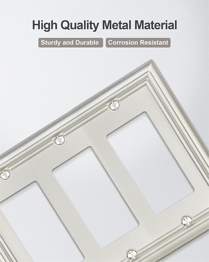 • 【Durable Steel】Made from durable metal, the triple decorator wall plate cover protects rocker switch or toggle switch from abrasion and impact