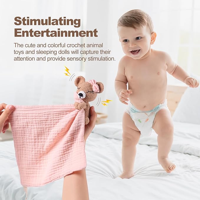 Baby Doll Blankets & Plush Teddy Bear Rattle - Perfect Newborn Girl Essential, Crochet Baby Rattles, Security Blanket, and Sleeping Toys for Babies