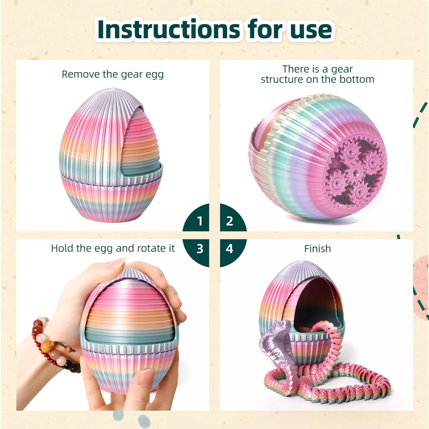 - Surprise Element: As you rotate the gears to open the egg, a 3D-printed animal, such as a snake or dragon, gradually emerges. This element of surprise adds unpredictability, increasing your curiosity and enjoyment.
