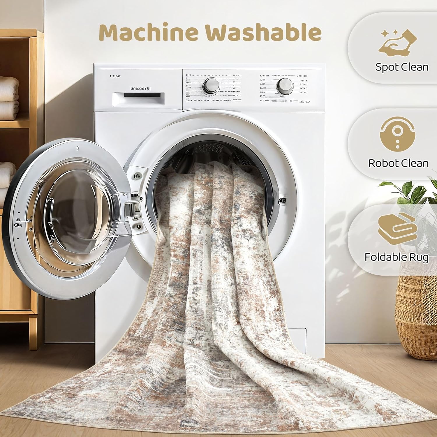 - MACHINE WASHABLE: Our rugs for living room is washable for easy care, directly toss in washing machine in cold water. for minor stains, simply vacuum with a hand-held vacuum or shake off outdoors. for water or coffee stain, wipe with a dry towel promptly