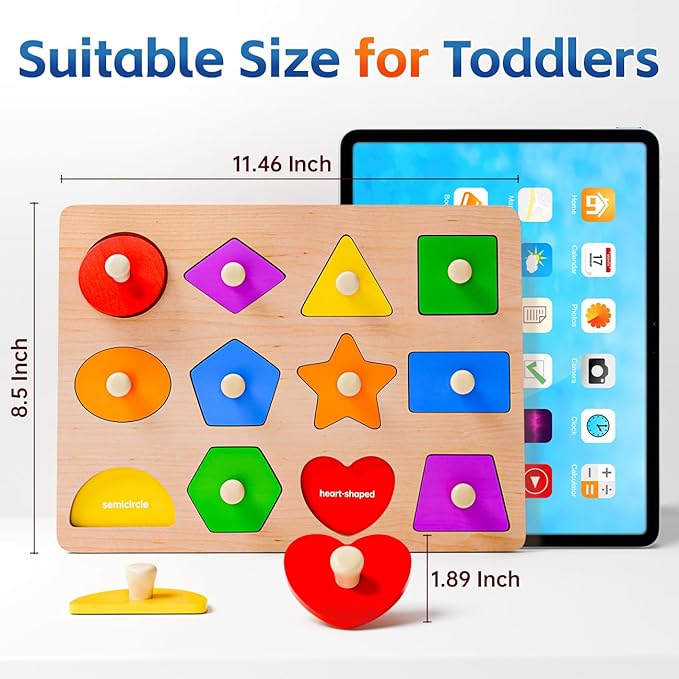 - Wooden Shape Peg Puzzle Board: SYHLN shape puzzle includes 6 colors and 12 shapes, and the peg puzzle board has rich shapes and bright colors, which are enough to attract children's attention and let children get a fun play experience;